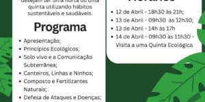 Nos próximos dias 12,13 e 14 de Abril, workshop destinado a todas as pessoas que desejam ter uma horta ou uma quinta utilizando hábitos sustentáveis e saudáveis.