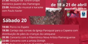 Mesa redonda com tema “Descobrir, Conhecer e Preservar o Património dos Impérios dos Espírito Santo”, promovido pelo Império da Ponte, no próximo dia 18 de abril às 20:30 na sala da Casa do Povo dos Flamengos, que contará com Roberto Morais como moderador e os oradores Padre Marco Luciano – ex. Diretor do Museu de Arte Sacra da Horta, Professor Carlos Lobão – Historiador e investigador com obras publicadas sobre o culto do Espírito Santo na ilha do Faial, Dra. Joana Bulcão – Técnica do Museu da Horta mais concretamente nas funções de Restauradora e Joaquim Correia – Presidente da Direção do Império da Ponte.